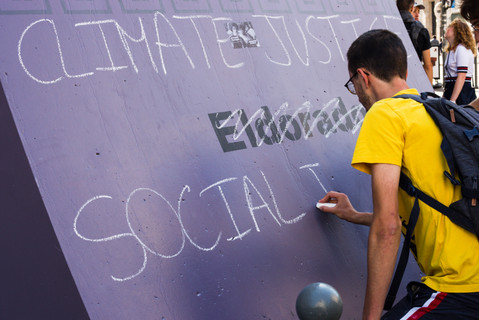 Certains se baladent avec leur sac poubelle et jouent des quadriceps pour ramasser des déchets en bordure de route tout en chantonnant. D'autre se font la courte échelle pour coller des stickers verts sur les façades et enseignes des grosses firmes et banques. D'autre, scandent plus fort que leurs voisins pour faire entendre leur nouveau slogan tant critique que caustique, certains sont même accompagnés d’un porte-voix plus ou moins puissant. D'autre ont le privilège de porter la banderole de leur association, et d’autre encore brandissent leur pancarte faite main fièrement, espérant qu’elle puisse rallier à sa cause toute personne qui la liera, restée là, plantée sur sa chaise de terrasse, d’un air peu intéressé, peu concerné par ces préoccupations climatiques.