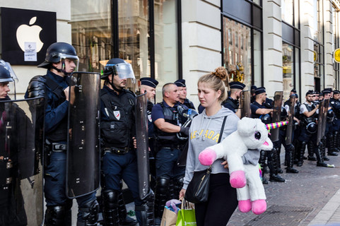 Puis, le cordon vivant de sécurité sera placé, sous les yeux ébahis des manifestants, pour protéger les baies vitrées de cette belle et grande enseigne honteusement souillée.